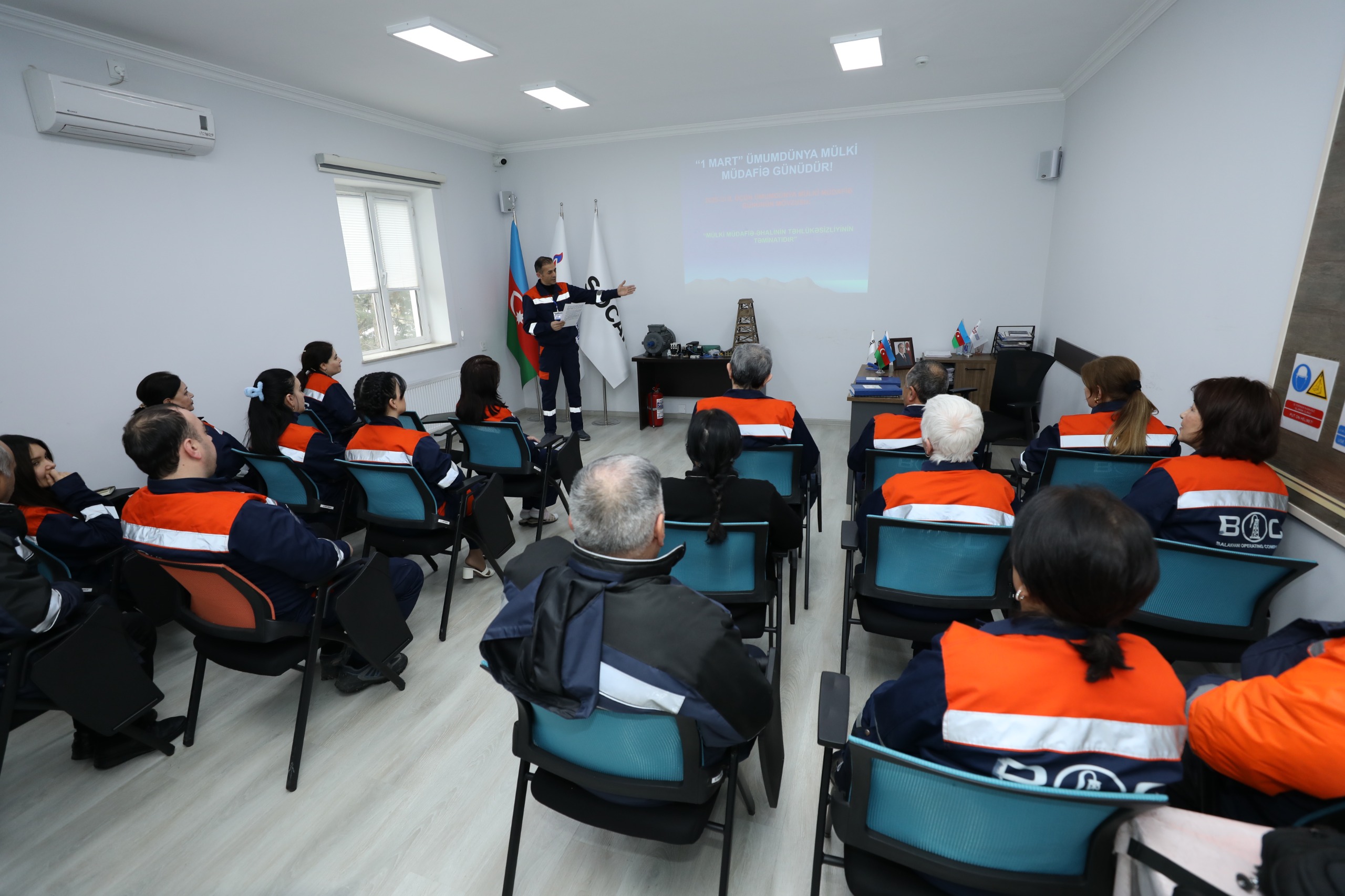 Mülki Müdafiə Xidmətinin rəhbəri Yusif Musayev “Ümumdünya Mülki Müdafiə Günü”, onun məqsəd və vəzifələri barədə məlumat verib. Xidmətin mühəndisi Nailə Quliyeva, həmçinin, təqvimlə bağlı ölkəmizdə və şirkətimizdə mülki müdafiənin təbliği istiqamətində təşkil edilən müxtəlif tədbirlər, o cümlədən açıq dərslər və təlimlər barədə həmkarlarımızı məlumatlanıdırb.