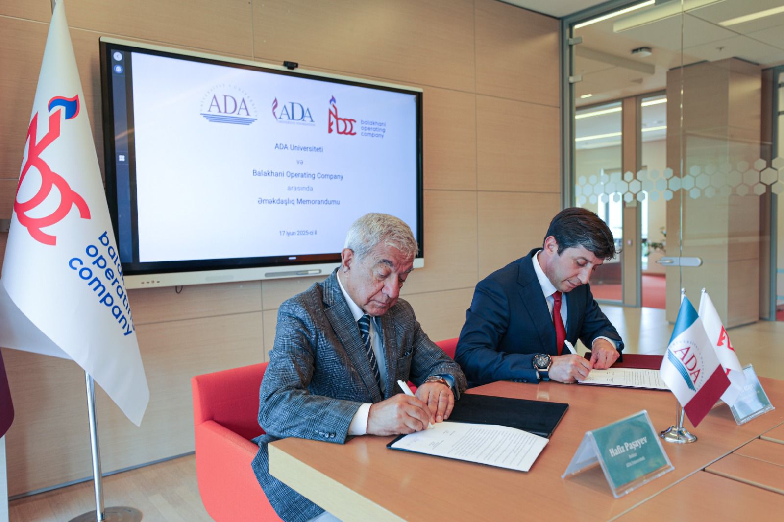 Bu gün Universitetin tədris mərkəzində rektor Hafiz Paşayev və BOC prezidenti Rövşən Rzayev tərəfindən imzalanan sənədə əsasən, hasilat şirkəti ADA Universiteti və ADA Fondu tərəfindən irəli sürülən elmi-tədqiqat layihələrinə, tələbələrin peşə təcrübəsinin artırılmasına dəstək verəcək.